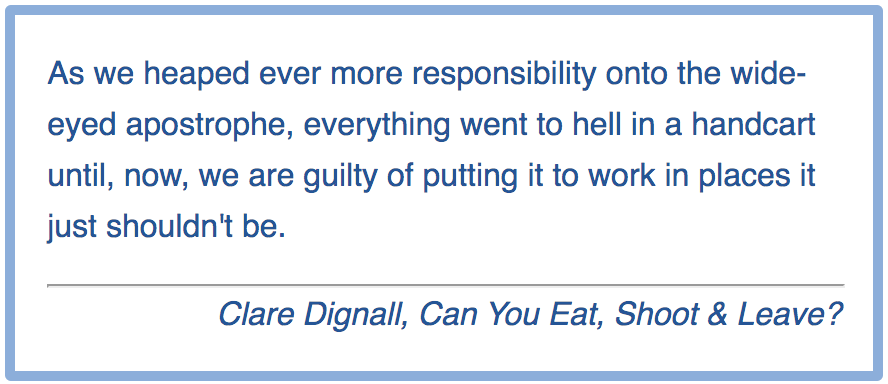 It’s probably pretty obvious and comical here, but it’s actually a mistake we see a lot in workplace writing. We’ve come across giant billboards for “downtown condo’s in the low 300 000’s!!” and high-level reporting documents with sentences like “The VP’s decided on option A.”