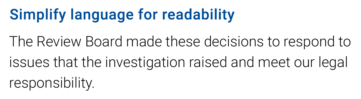 When writers and reviewers are both trained in this way, it reduces complexity, editing time, and back-and-forth reviews.